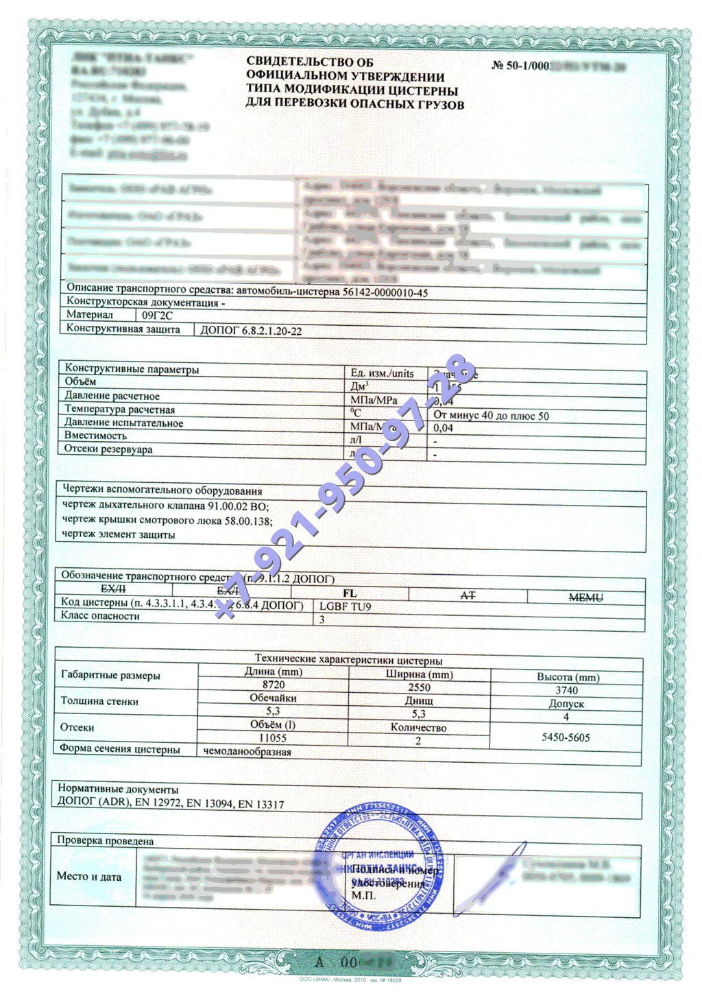 Купить свидетельство об официальном утверждении типа цистерны. В нашей компании вы можете сделать свидетельство об официальном утверждении типа автоцистерны и свидетельство об испытании и (или) проверке цистерны.